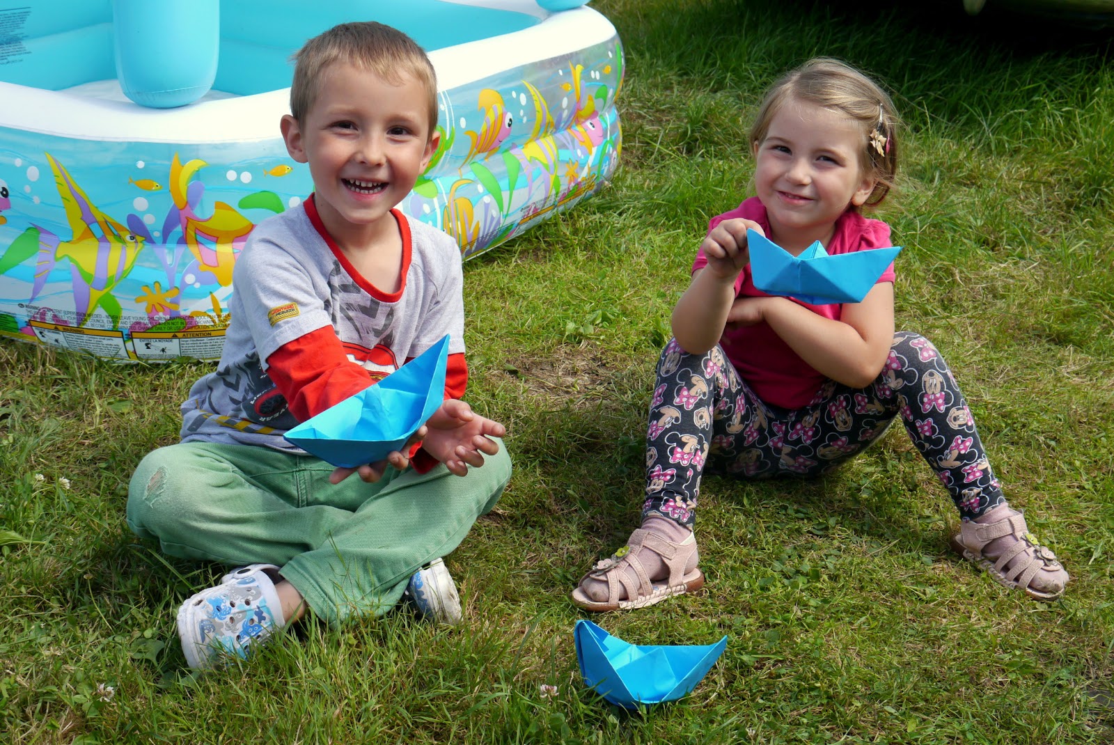 Na koniec robimy tradycyjne papierowe łódki składane z papieru:-)