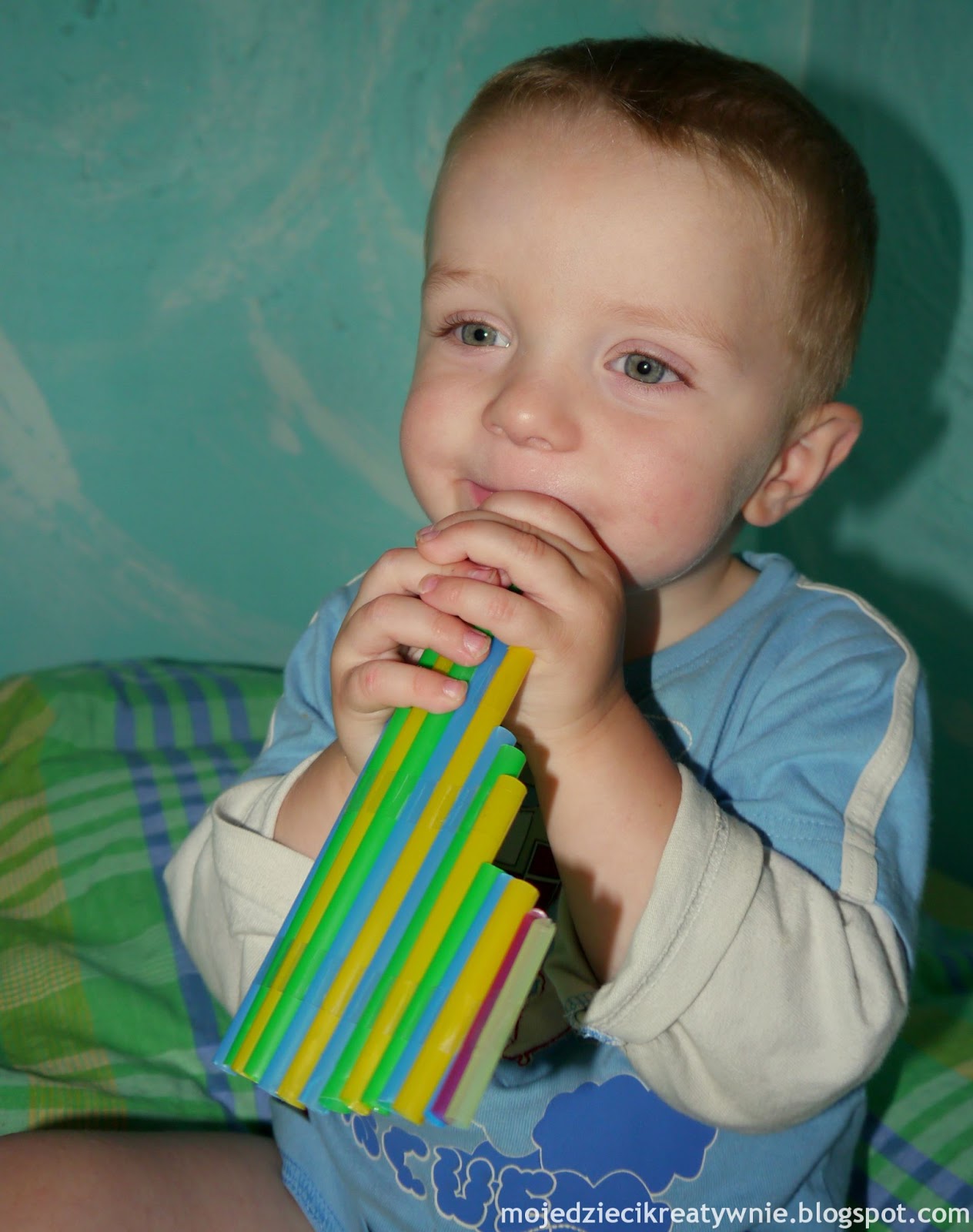 Wykonanie jest bardzo proste układamy w rzędzie słomki, ścinamy je nożyczkami pod skosem a następnie wszystkie słomki w kilku miejscach sklejamy taśmą. Dźwięki nie są nadzwyczajne, ale chłopcom się podobało, a przy okazji jest to fajne ćwiczenie logopedyczne dla buzi dziecka:-)