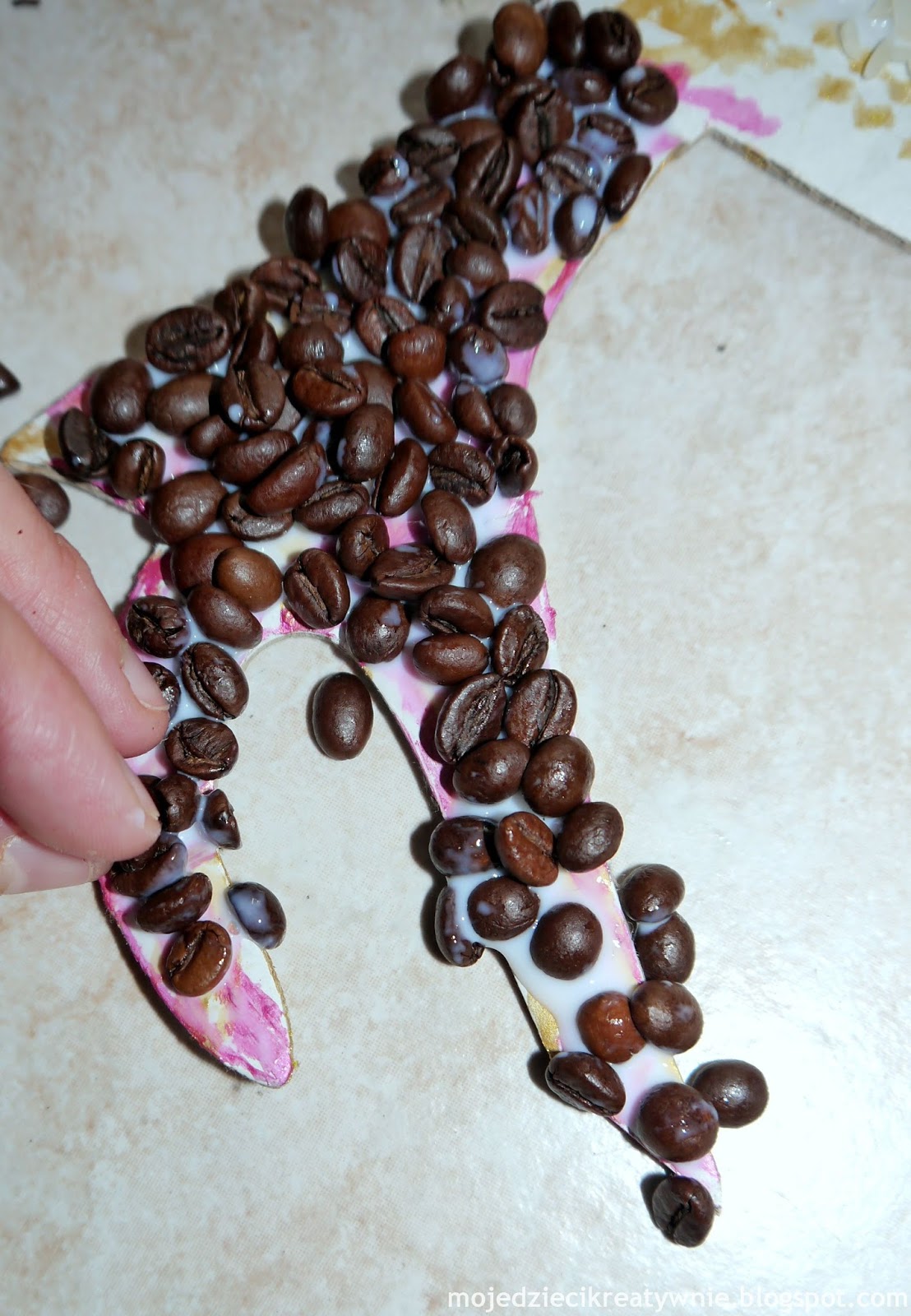 Ptasie łapki okleiliśmy ziarenkami kawy