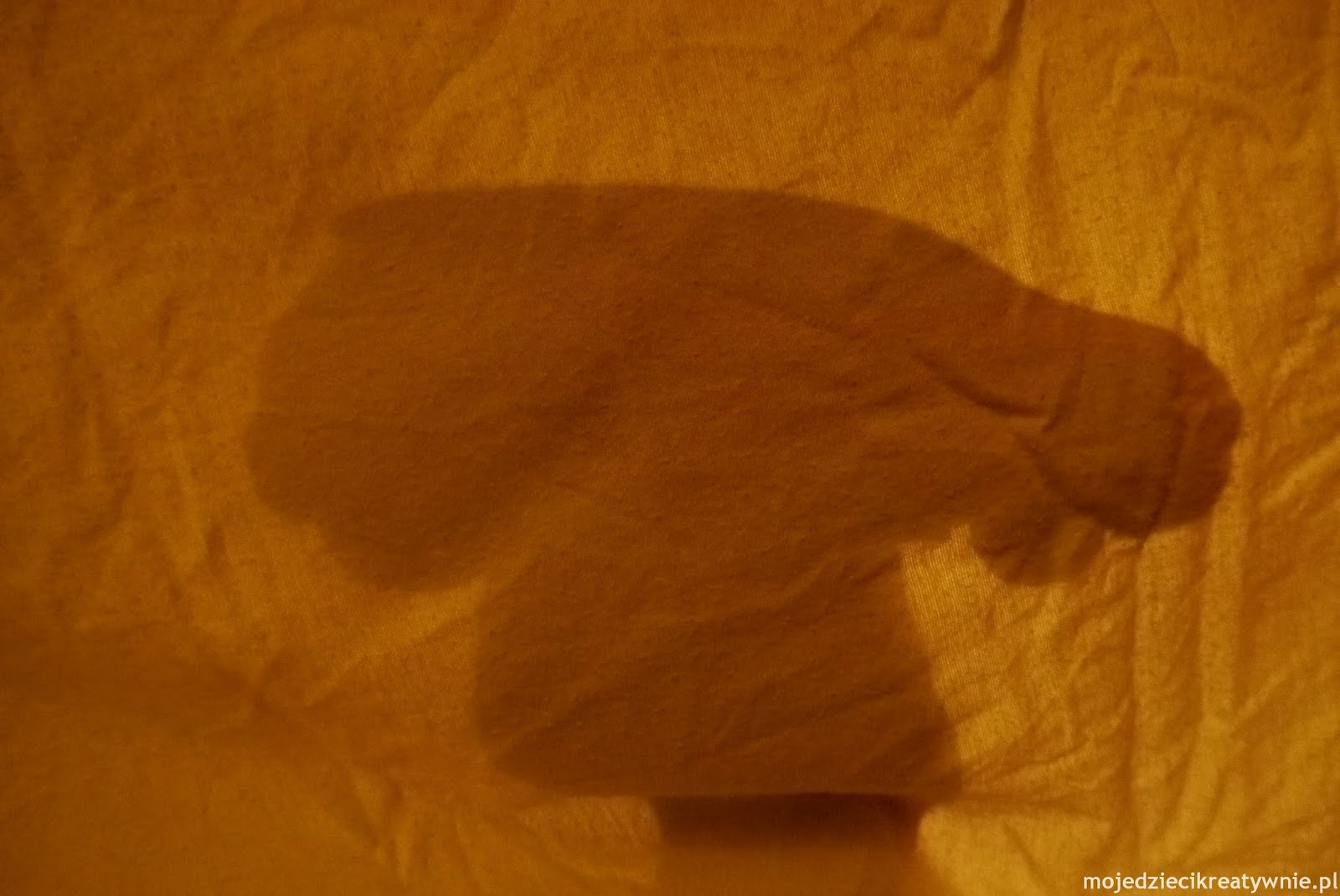 Myślę, że nasza wieczorna sztuka teatralna nie wymaga szczegółowego tłumaczenia. Odgadywanie jaki przedmiot kryje się za tajemniczym cieniem to zabawa, która bardzo moim synkom przypadła do gustu. Zdumiało mnie, jak Adaś szybko nauczył się wybierać kolejne przedmioty, które będą rzucać ładne cienie. Ostatnie sześć zdjęć to pomysły Adasia, który znikał w swoim pokoju lub kuchni, po czym biegiem wracał z tajemniczą miną i uśmiechem- ukrywając w siatce nowe przedmioty:-) To najlepszy dowód, jak bardzo taka zabawa działa na wyobraźnię dziecka.Potem do pokazywanych cieni dodawaliśmy jeszcze różne odgłosy i dialogi… A kiedy mama odgadywała, że koraliki to pociąg było jeszcze weselej:-)