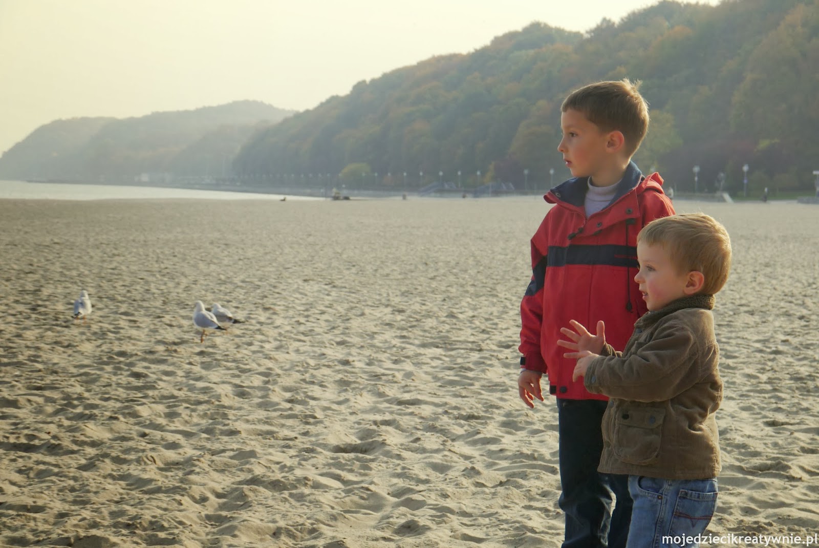 Wielki plac zabaw na piaszczystej plaży powstał tu kilka lat temu, tuż obok Teatru Muzycznego i portu jachtowego. Dużą zaletą tego placu, są ułożone na piasku drewniane kładki, więc każda mama swobodnie może poruszać się z wózkiem. Latem oczywiście na placu zabaw są tłumy odwiedzających i plażowiczów, ale jesienią jak widać uroczy i spokojny morski klimat. Zachęcam do takich spacerów, bo doskonale wpływają na zdrowie naszych pociech, a my możemy przez chwilę się odprężyć.