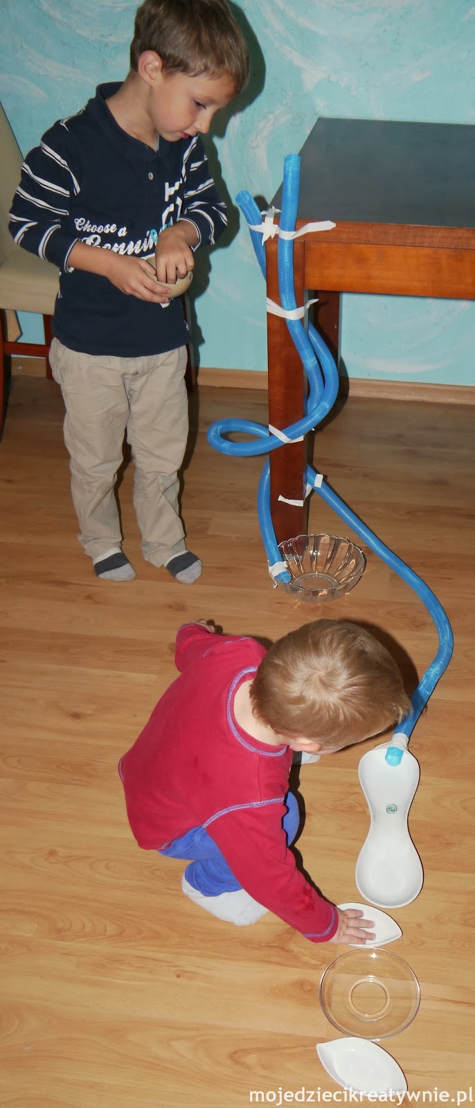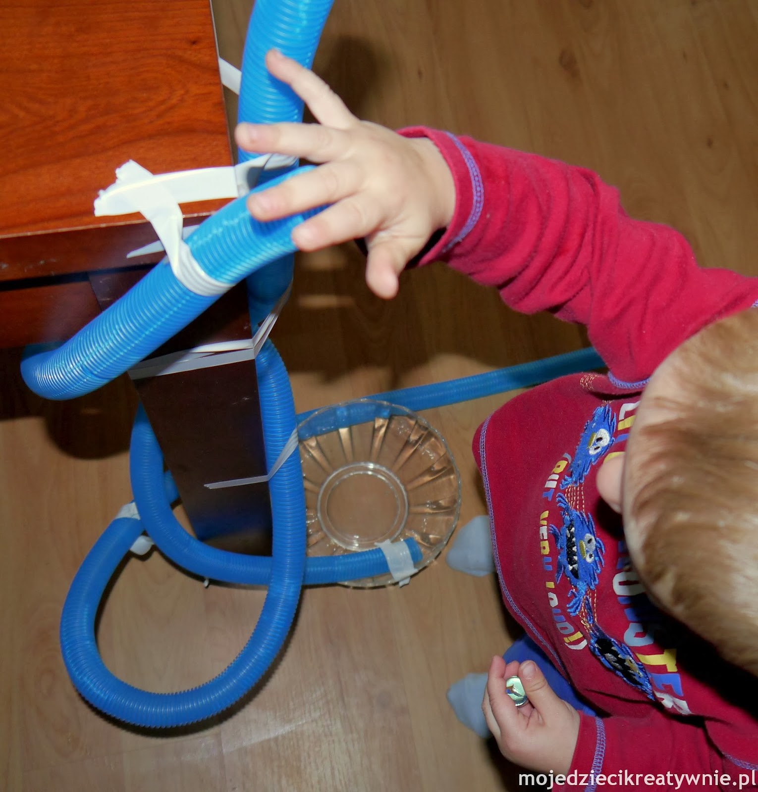 Drugi wylot rury umocowaliśmy do podłużnej miseczki w taki sposób,