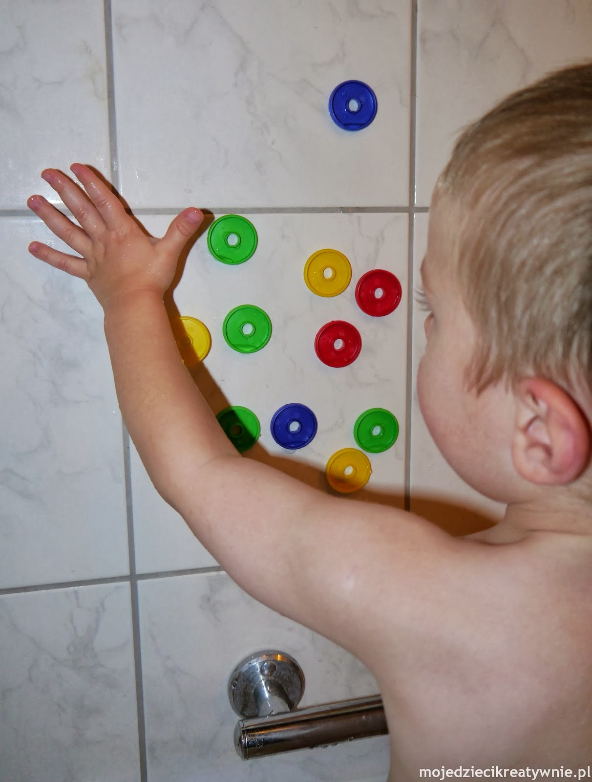 zabawą było przyklejanie mokrych krążków do kafelek lub wanny:-)