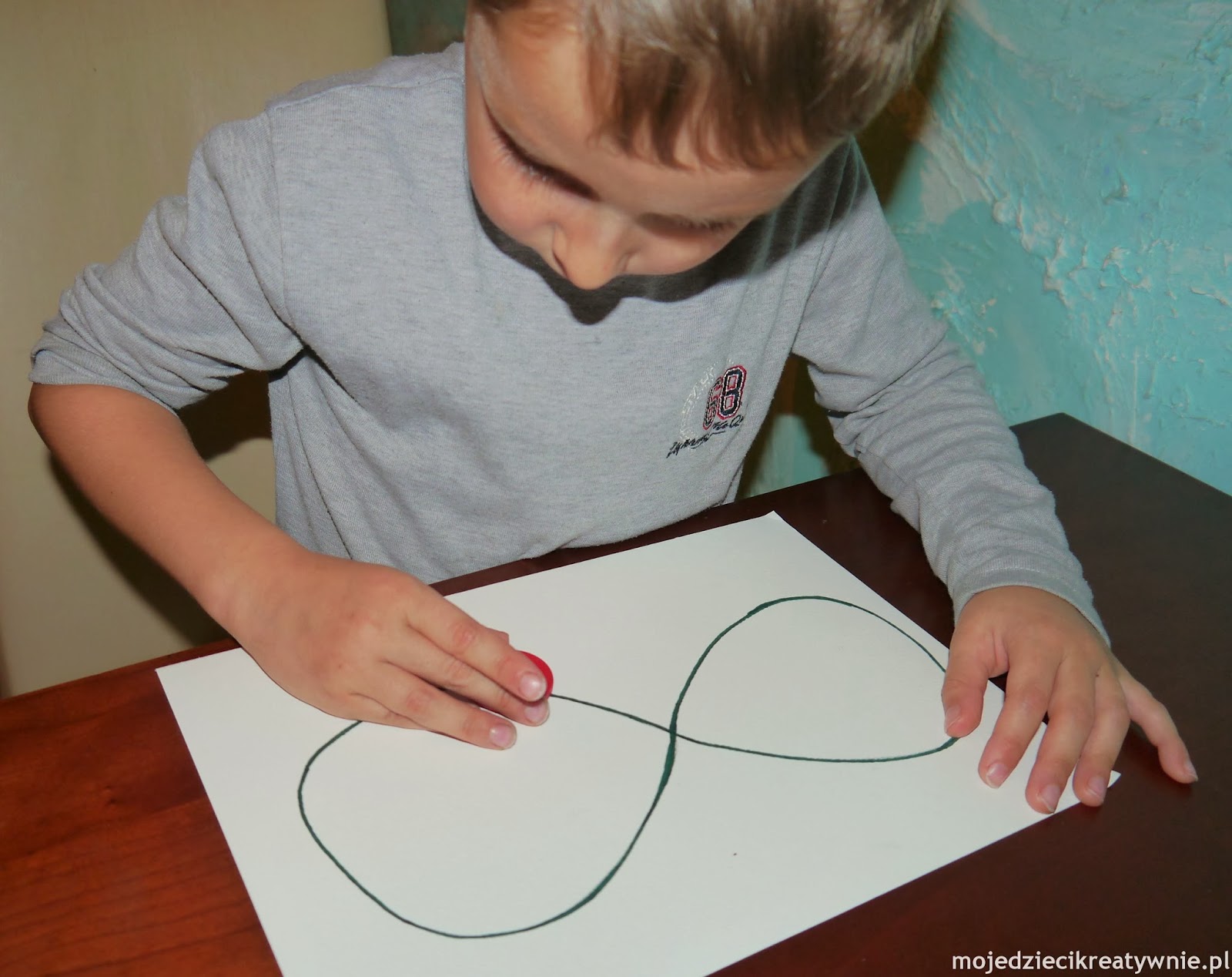 Podobnie można się bawić podążając po tzw. “leniwej ósemce”. Jest to doskonałe ćwiczenie