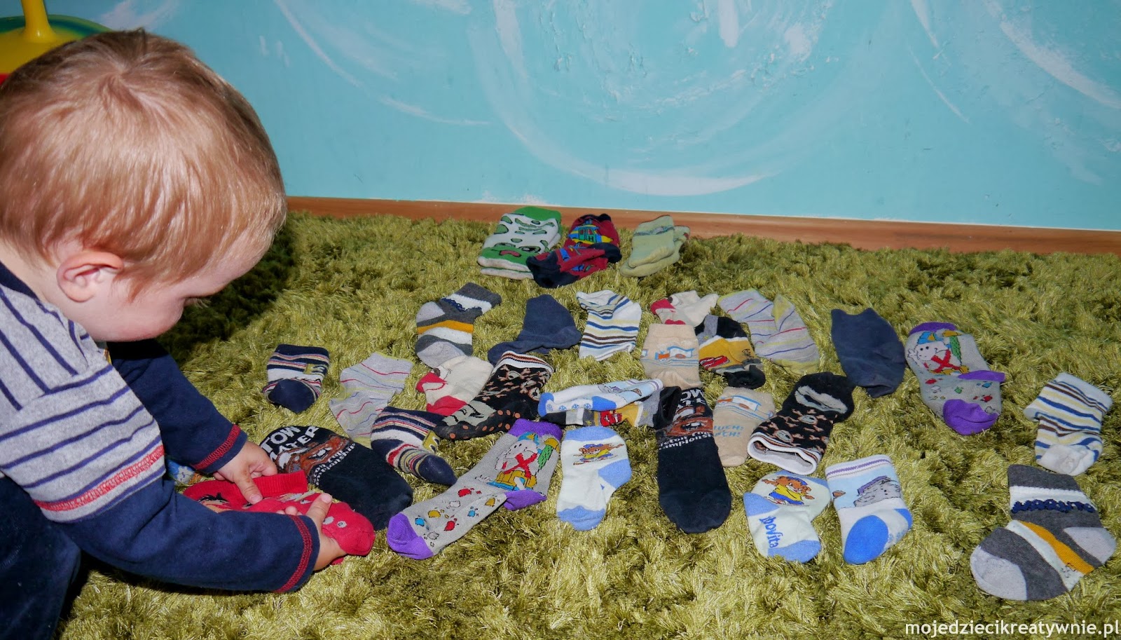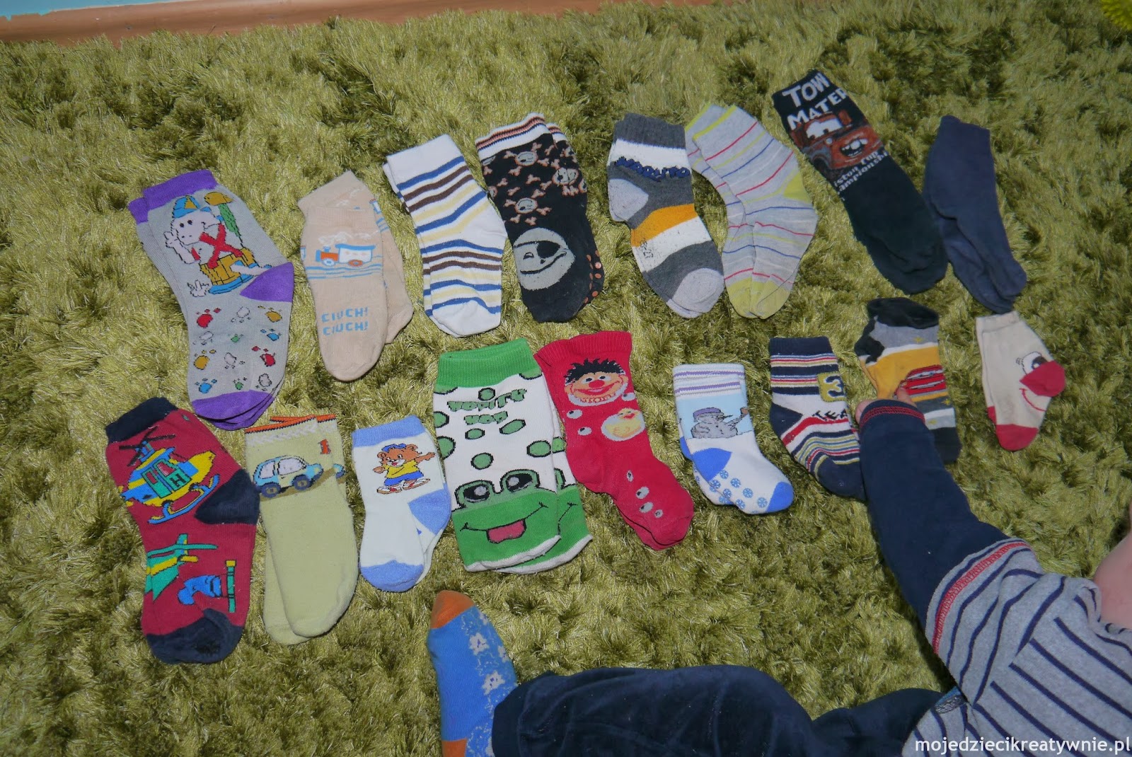 Dziś zabawa, która kiedyś nam umknęła w natłoku zdjęć. Myślę, że część z Was parowanie skarpetek już z dzieckiem nieraz zaliczyła.