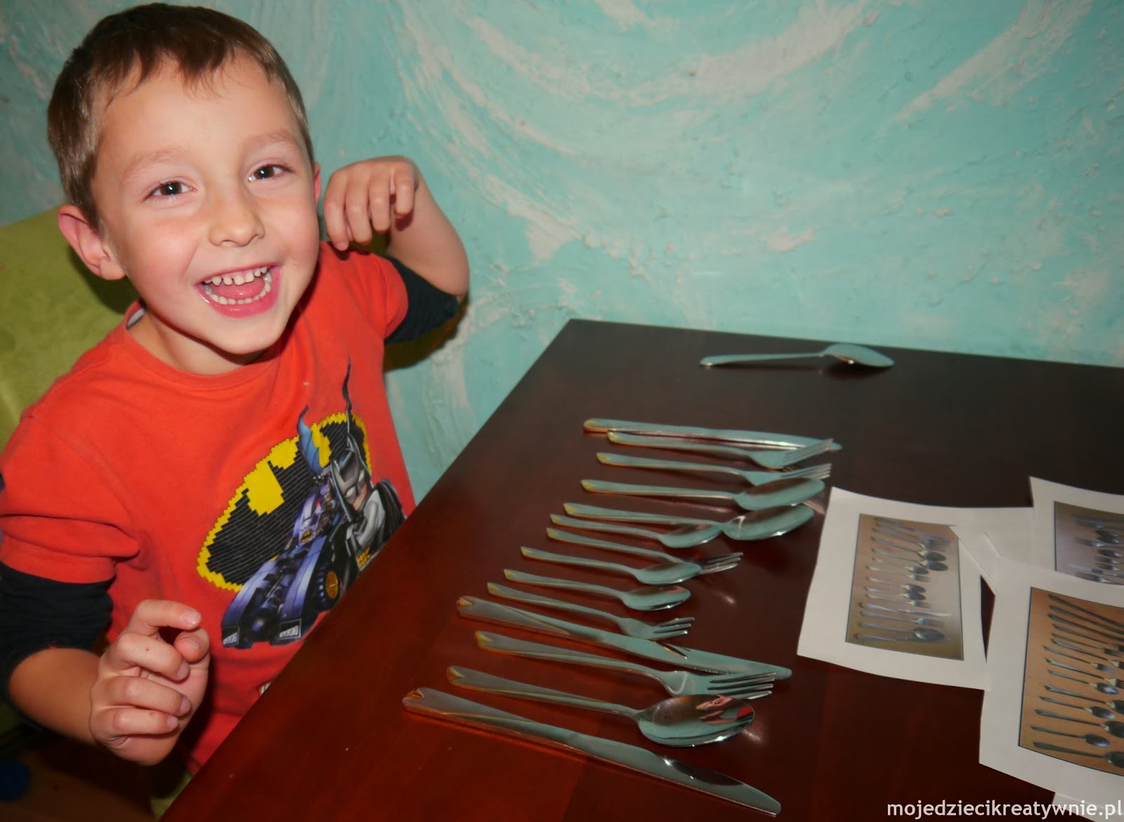 Dla młodszych dzieci proponowałam kiedyś zabawę w segregowanie sztućców